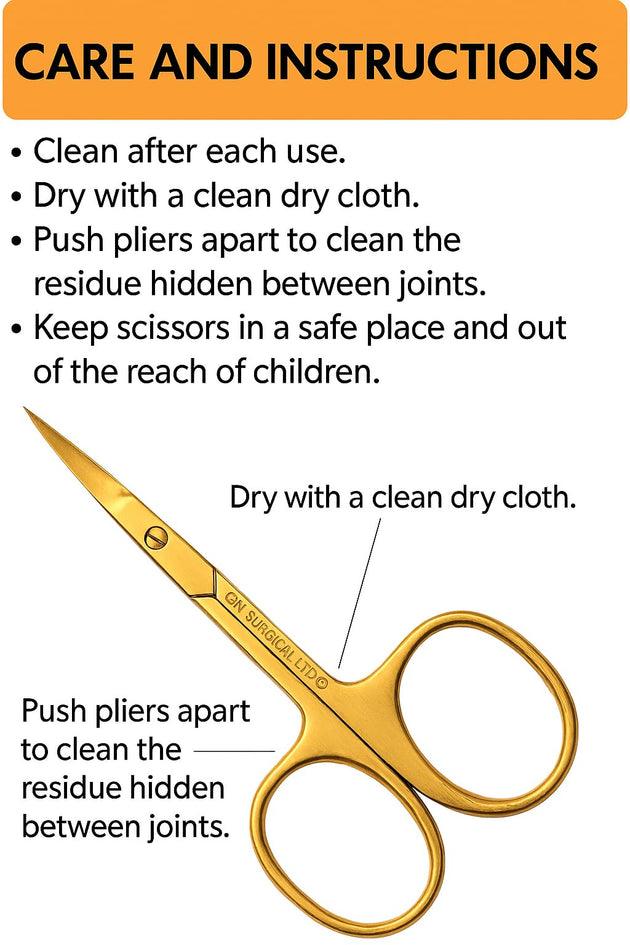 Professional Stainless Steel Curved Cuticle Scissors for Eyebrow, Nose Hair, Manicure & Dead Skin Trimming - Gold