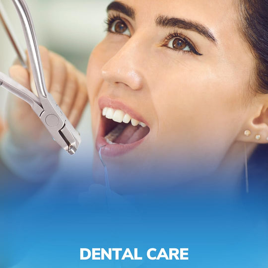 Professional orthodontic instruments including pliers and specialized tools for bracket placement, wire bending, and appliance adjustment. Essential for orthodontic practices.
