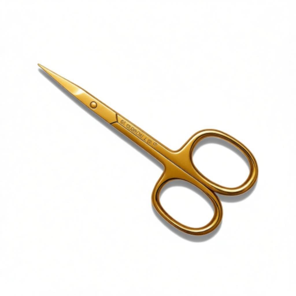 Professional-grade curved scissors featuring premium stainless steel construction with titanium gold plating for enhanced durability and corrosion resistance. The sharp, precisely-pointed blades deliver exceptional cutting performance across multiple grooming applications: cuticle work, dead skin removal, eyebrow definition, nose hair trimming, and comprehensive manicure and pedicure care. The anatomically curved design minimises hand fatigue whilst maximising blade control and accuracy. Ideal for beauty professionals and discerning individuals who demand reliable, high-performance grooming instruments.